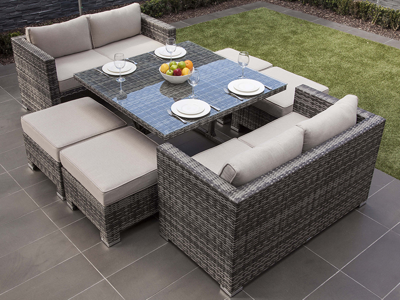 PE rattan Dining set=one table+two double sofas+two ottomans